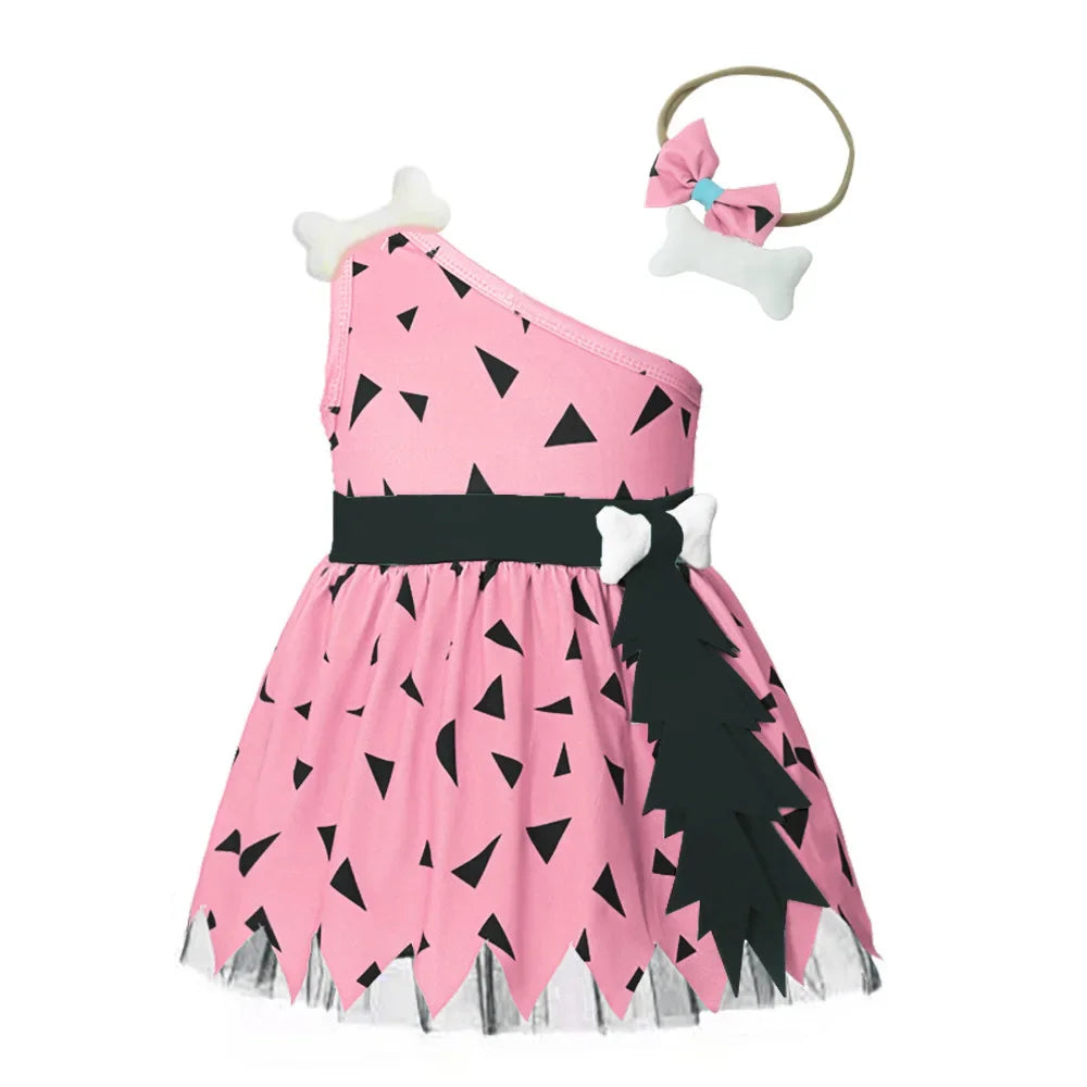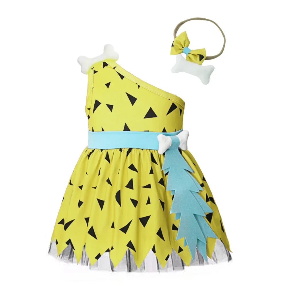 0-4Y Baby Caveman Dresses Girl Primitive Man Historical Stone Age Performance Costume One Shoulder Orange Dress Kids Halloween