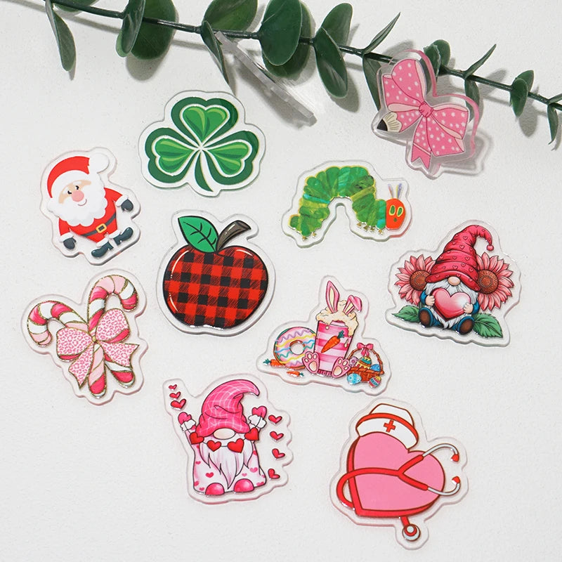 10pcs Clear Acrylic Planar Resin Back To School Themed DIY Bows Keychain Craft Supplies Handmade A294953