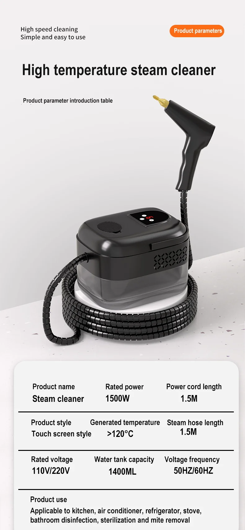 1500W Steam Cleaner High Temperature Pressure Washer with Remote control Steam Cleaning Machine For Home Kitchen Hood Car 1400ml