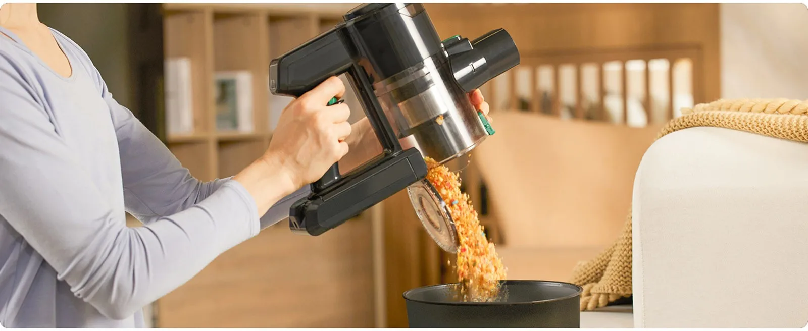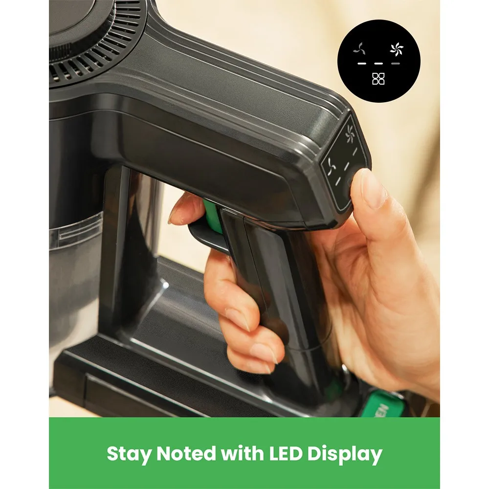 With a weight of only 1.45 kg, the V9 vacuum cleaner is super light and suitable for one-handed cleaning. With the 180 degrees swivel function, you can easily clean under the bed and low furniture. The LED headlights illuminate dust that is invisible to the naked eye. The V9 vacuum cleaner comes with a crevice tool and a 2-in-1 dust brush for various applications. You can easily clean the sofa, bed, curtains, upholstery, air vents, car seats, and much more.